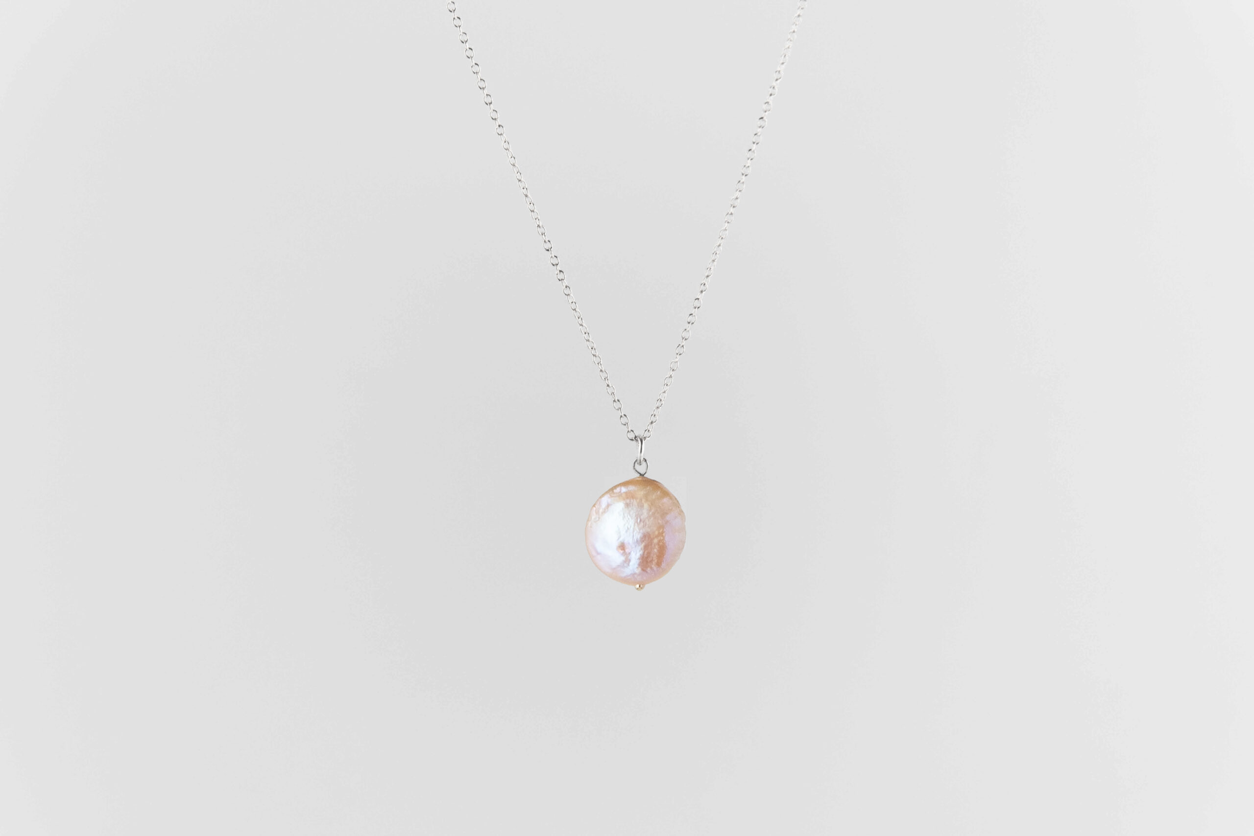 Our Coin pearl necklace is the epitome of elegance and grace. Made with a fair labour sweet water pearl in a soft pink colour, this necklace is made to fall in love with over and over again. The chain of the necklace is made of sterling silver, with a length of 42 cm. Our Coin pearl necklace is crafted by hand in our atelier in France. It comes in a beautiful eco paper gift box. This necklace is also the perfect sustainable bridal jewellery piece to wear on your wedding.