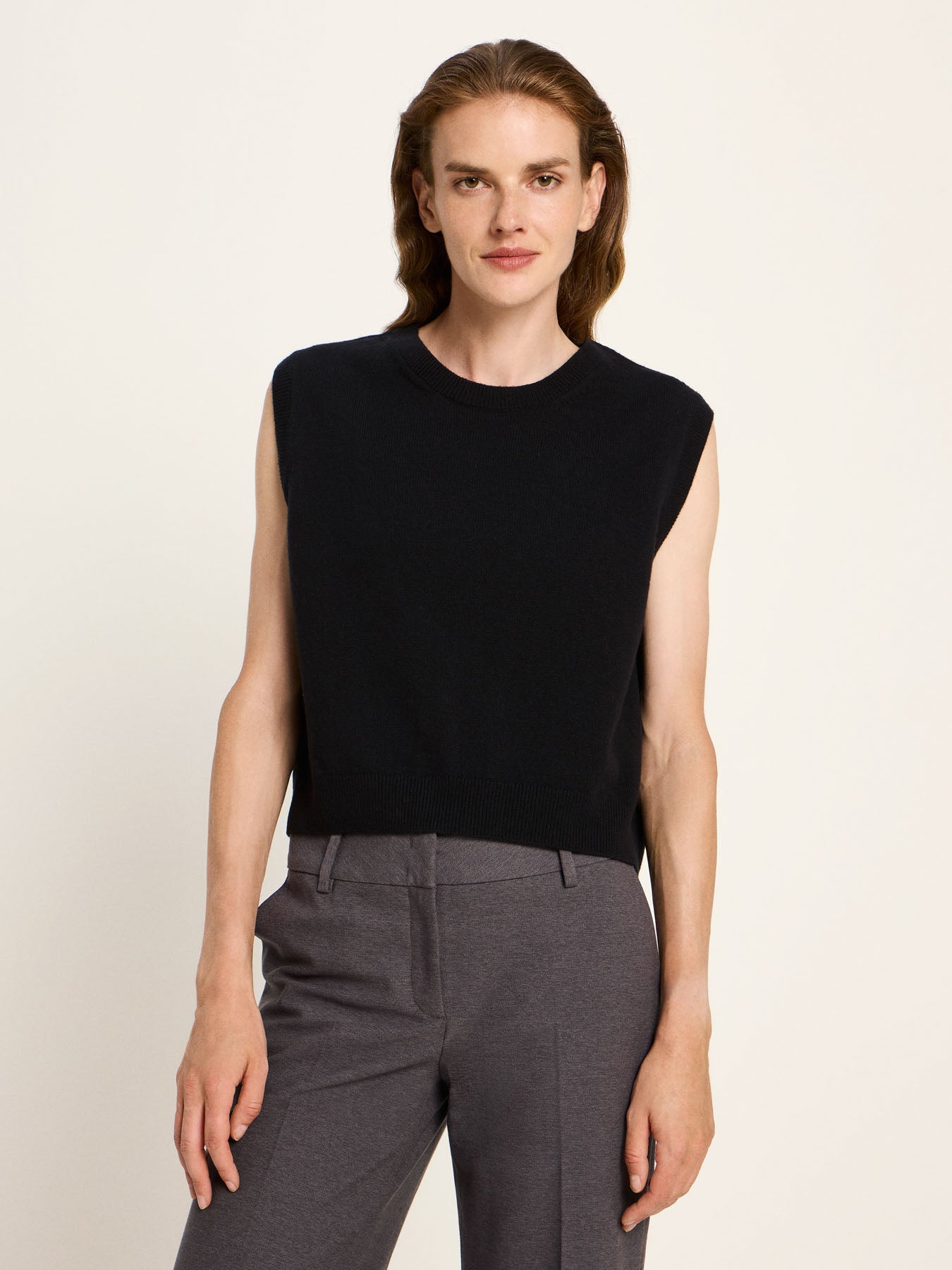 Dieser Pullunder aus reiner, hochwertiger Merino Schurwolle vereint minimalistisches Design mit höchstem Tragekomfort. Das gerade geschnittene Modell mit Rundhalsausschnitt und überschnittenen Schultern lässt sich unkompliziert stylen – solo, in Kombi mit enganliegenden Teilen wie Langarmshirts oder unter Blazern für einen wintertauglichen Office-Look. Dank seiner feinen Strickstruktur ist er leicht, wärmend und ideal für Layering-Looks in jeder Jahreszeit.