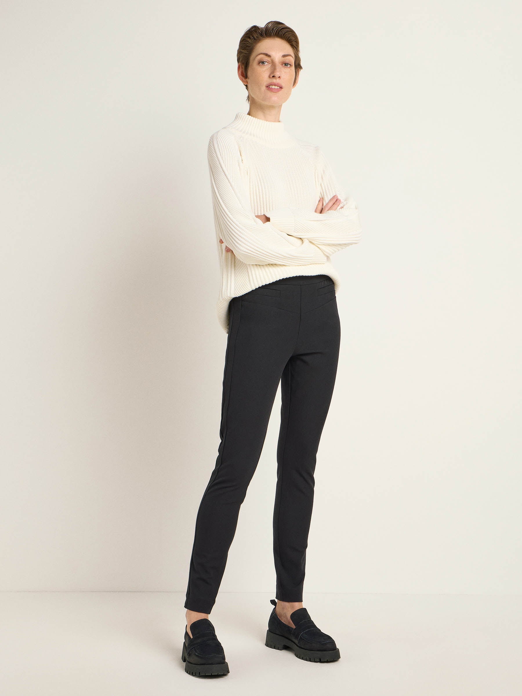 Timeless, versatile, and comfortable – the slim, close-fitting design makes our sustainable trousers the perfect all-rounder. The high-quality organic cotton fabric with comfort stretch ensures pleasant freedom of movement and a perfect fit. With shaping seams, an elastic waistband, and GOTS certification, these trousers combine stylish design with responsible manufacturing. These vegan slim-fit trousers can be combined in a variety of ways – from casual to elegant.