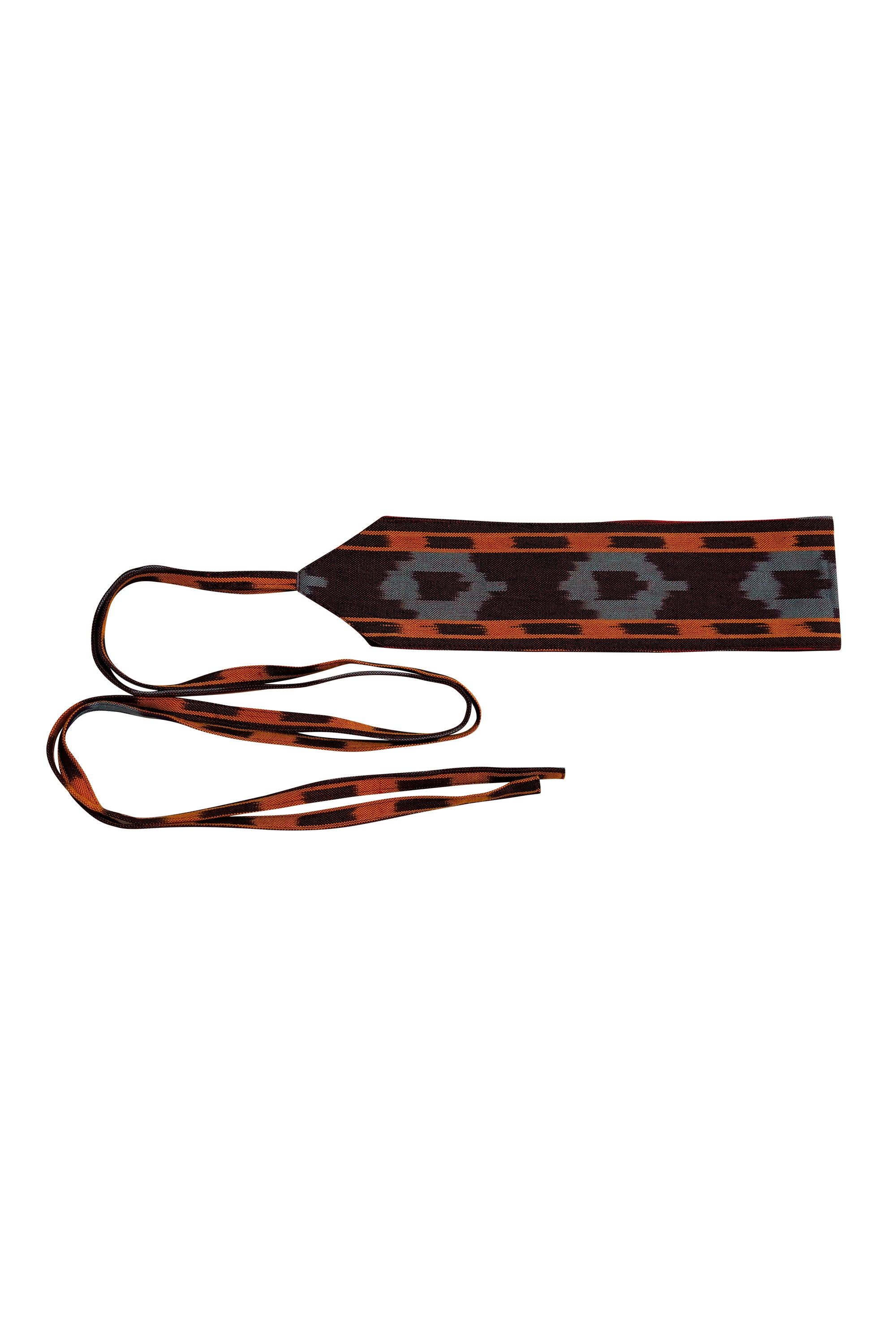 Express your colourful side with our free size Ikat Wrap Belt. This adjustable, Obi-inspired belt sits flat on your waist with extended tie wraps that you can knot in front or at the back. Crafted from handwoven cotton Ikat, the colourful repeat patterns on your belt add a playful touch to any outfit.