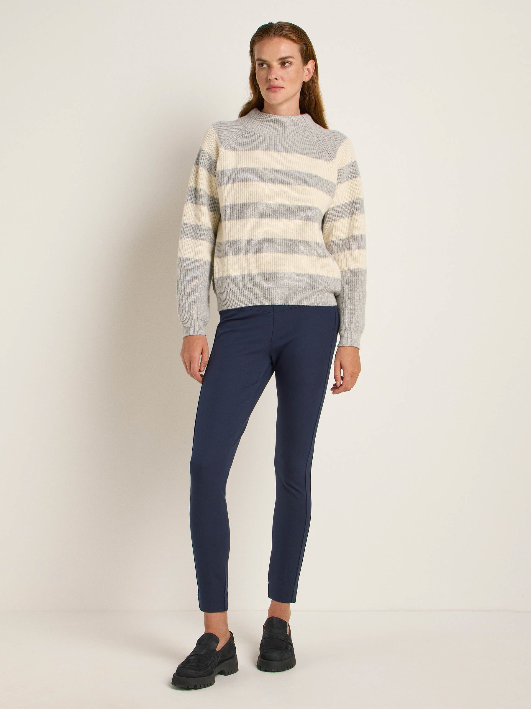 Timeless, versatile, and comfortable – the slim, close-fitting design makes our sustainable trousers the perfect all-rounder. The high-quality organic cotton fabric with comfort stretch ensures pleasant freedom of movement and a perfect fit. With shaping seams, an elastic waistband, and GOTS certification, these trousers combine stylish design with responsible manufacturing. These vegan slim-fit trousers can be combined in a variety of ways – from casual to elegant.